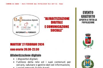 Evento gratuito aperto a tutta la popolazione, con richiesta di prenotazione entro e non oltre il 17.02.2024 presso la biblioteca di Hone ( nr. di telefono 0125803540) suddiviso in 2 serate...