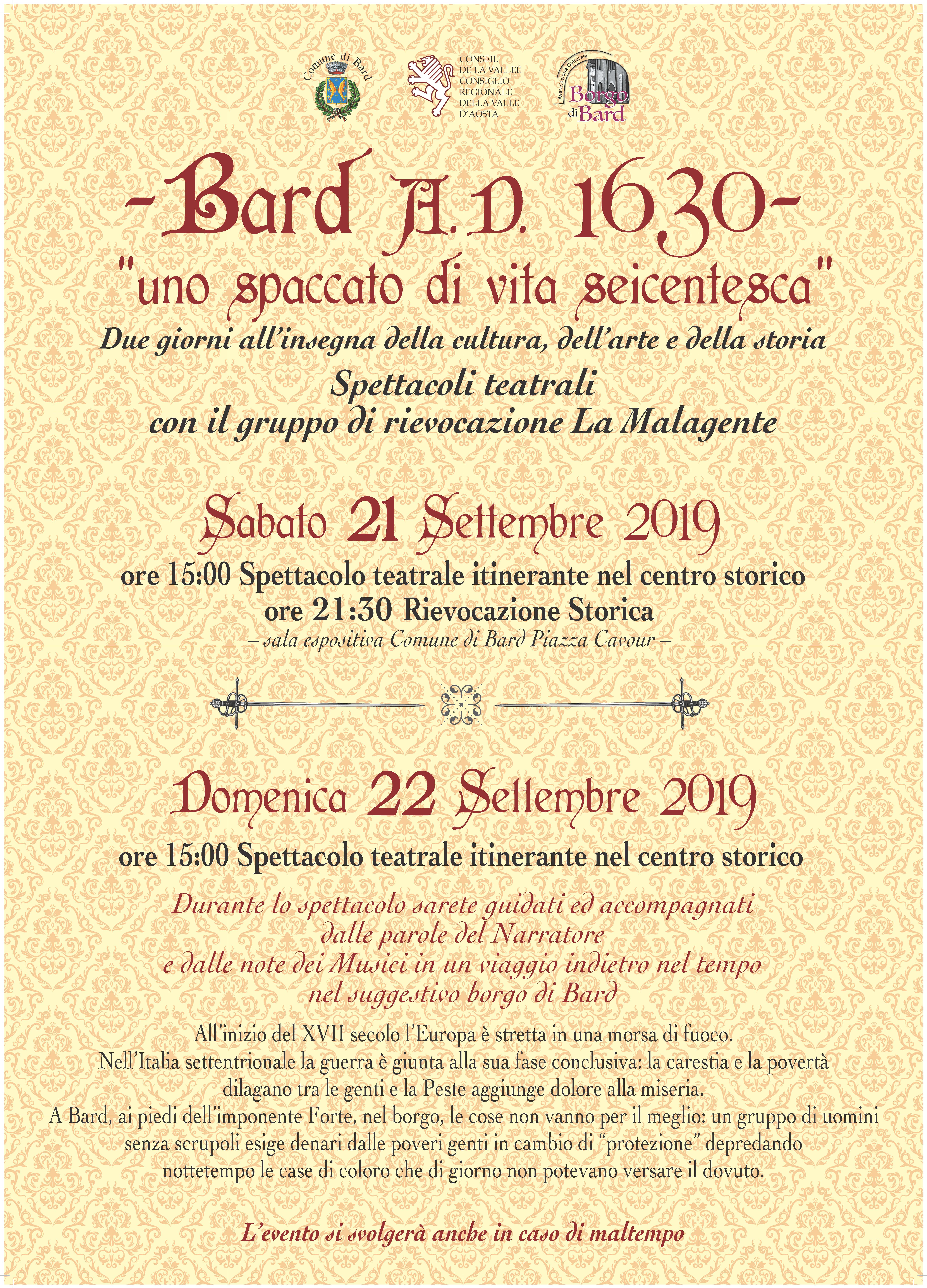 In allegato troverete le locandine con tutte le informazioni degli eventi programmati dall'Associazione Culturale Borgo di Bard per l'anno 2019.