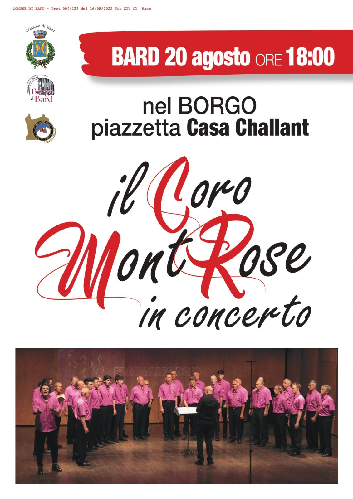 nel Borgo di Bard nella piazzetta di Casa Challant il 20 agosto 2022 alle ore 18.00 si terrà il concerto del Coro Mont Rose
