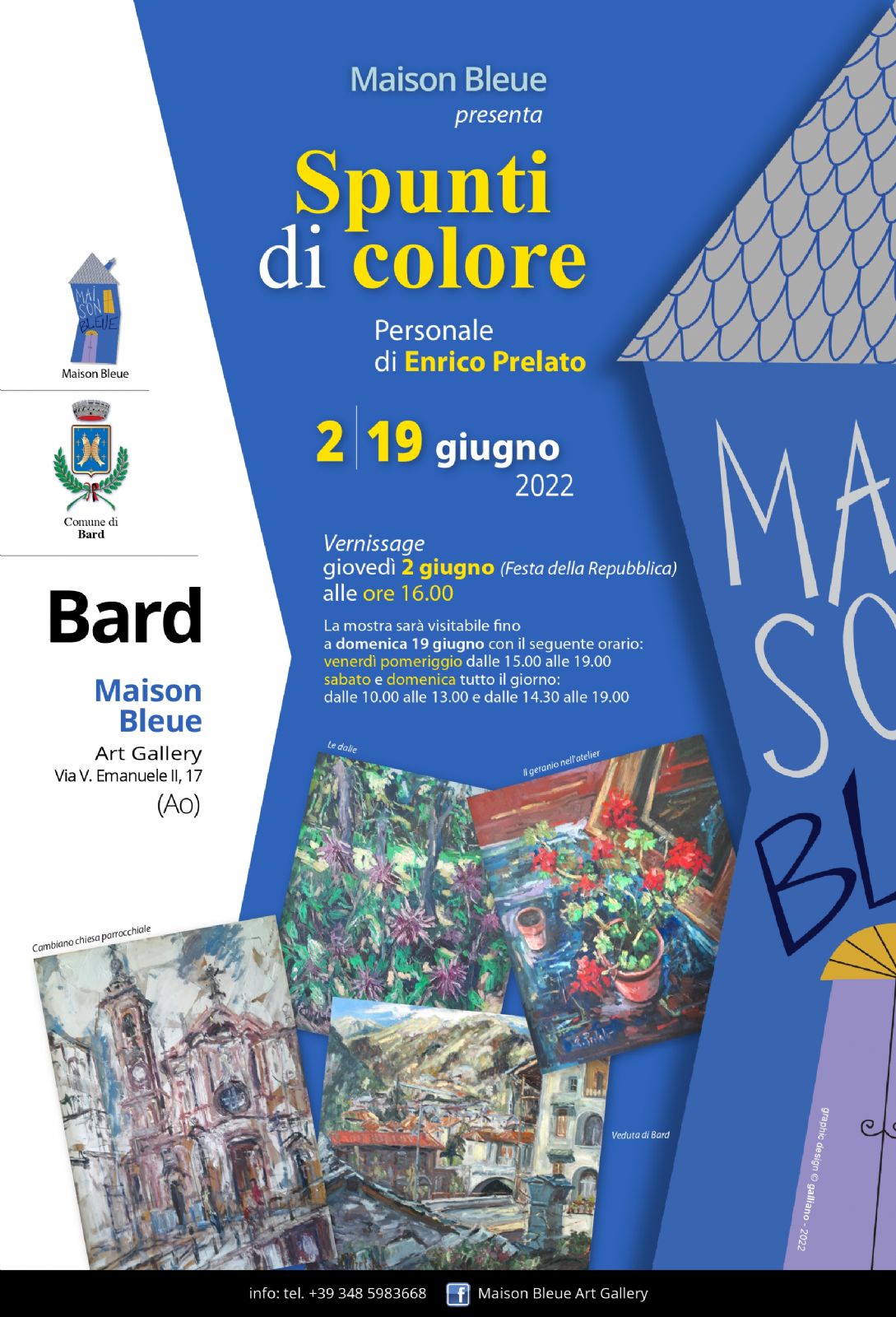 La mostra sarà visitabile fino a domenica 19 giugno con il seguente orario:
