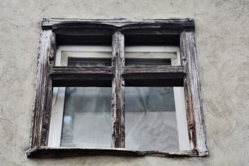 Casa con finestra a crociera ridotta e tracce di dipinti murali