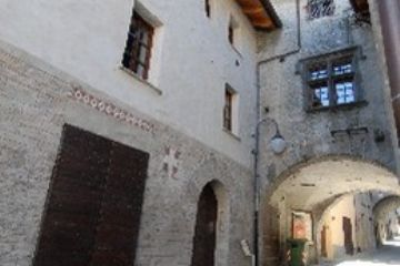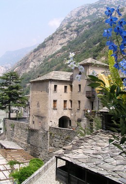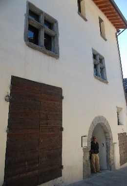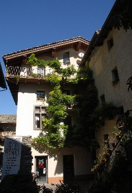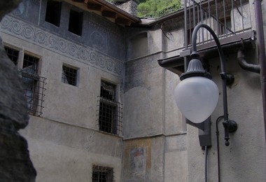 L’edificio deve la sua forma odierna all’ampliamento, intorno alla metà del Settecento, dell’attigua dimora di famiglia dei conti Nicole di Bard. La facciata, scandita da ampi balconi, al primo piano rivela la presenza di pitture murali: è ancora visibile un putto alato. Sono presenti tracce di insegne, non più leggibili, che indicano come la dimora sia stata adattata, presumibilmente dall’Ottocento, anche a una funzione commerciale. L’interno è caratterizzato da alcuni saloni di rappresentanza, con ampie volte decorate da cornici di stucco.
