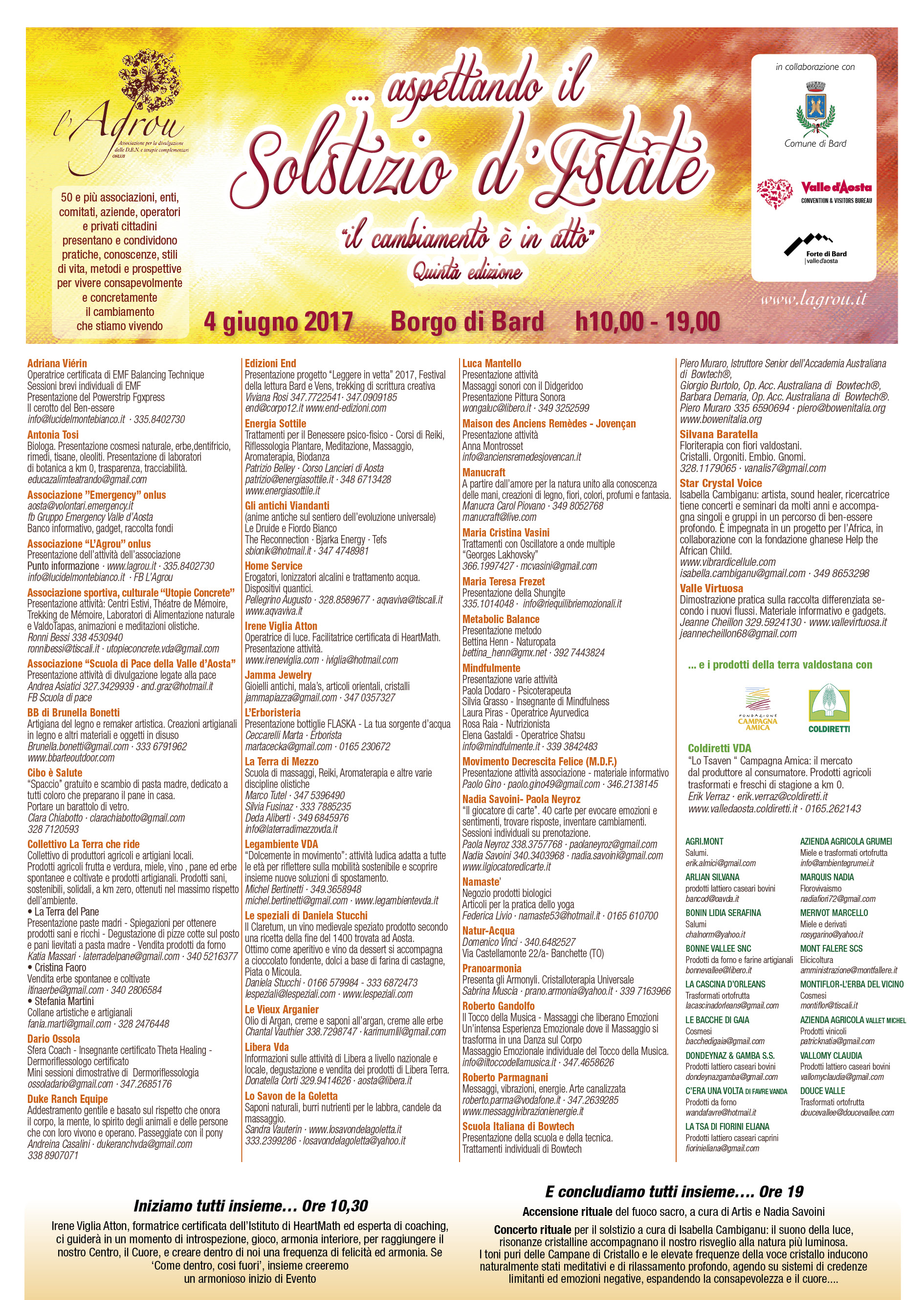 ...50 e più associazioni, enti, comitati, aziende , operatori e privati cittadini presentano e condividono pratiche, conoscenze, stili di vita, metodi e prospettive per vivere consapevolmente e concretamente il cambiamento che stiamo vivendo ...