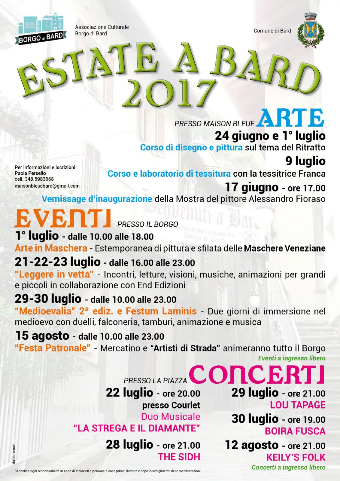 In allegato il calendario le manifestazioni programmate durante il periodo estivo organizzate dall'Associazione "Borgo di Bard"