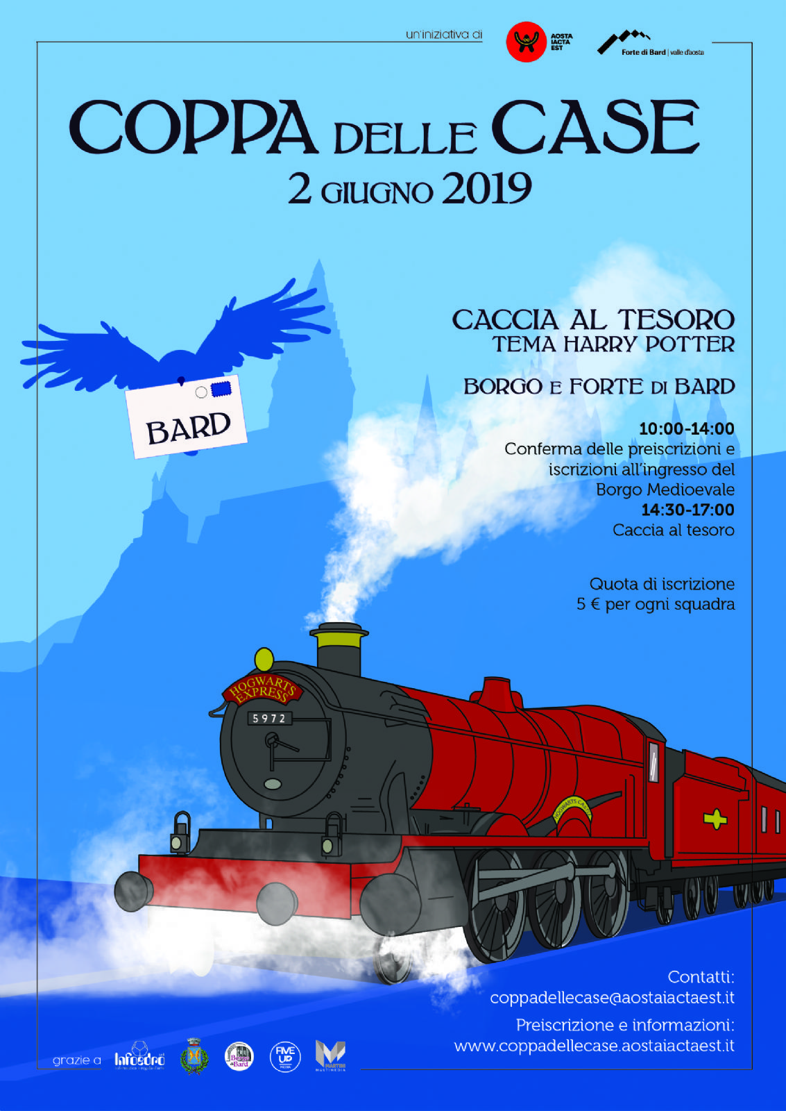 Si svolgerà, come ormai da alcuni anni, dalle ore 10.00 alle ore 17.00, nel Borgo e nel Forte di Bard la caccia al tesoro, a tema "Harry Potter"...