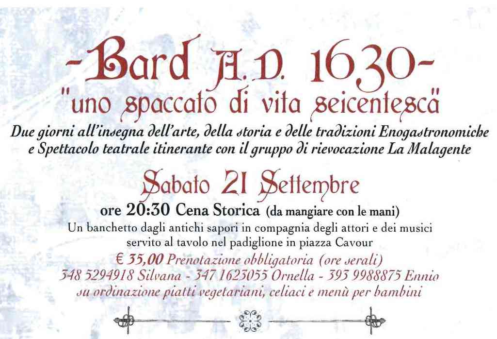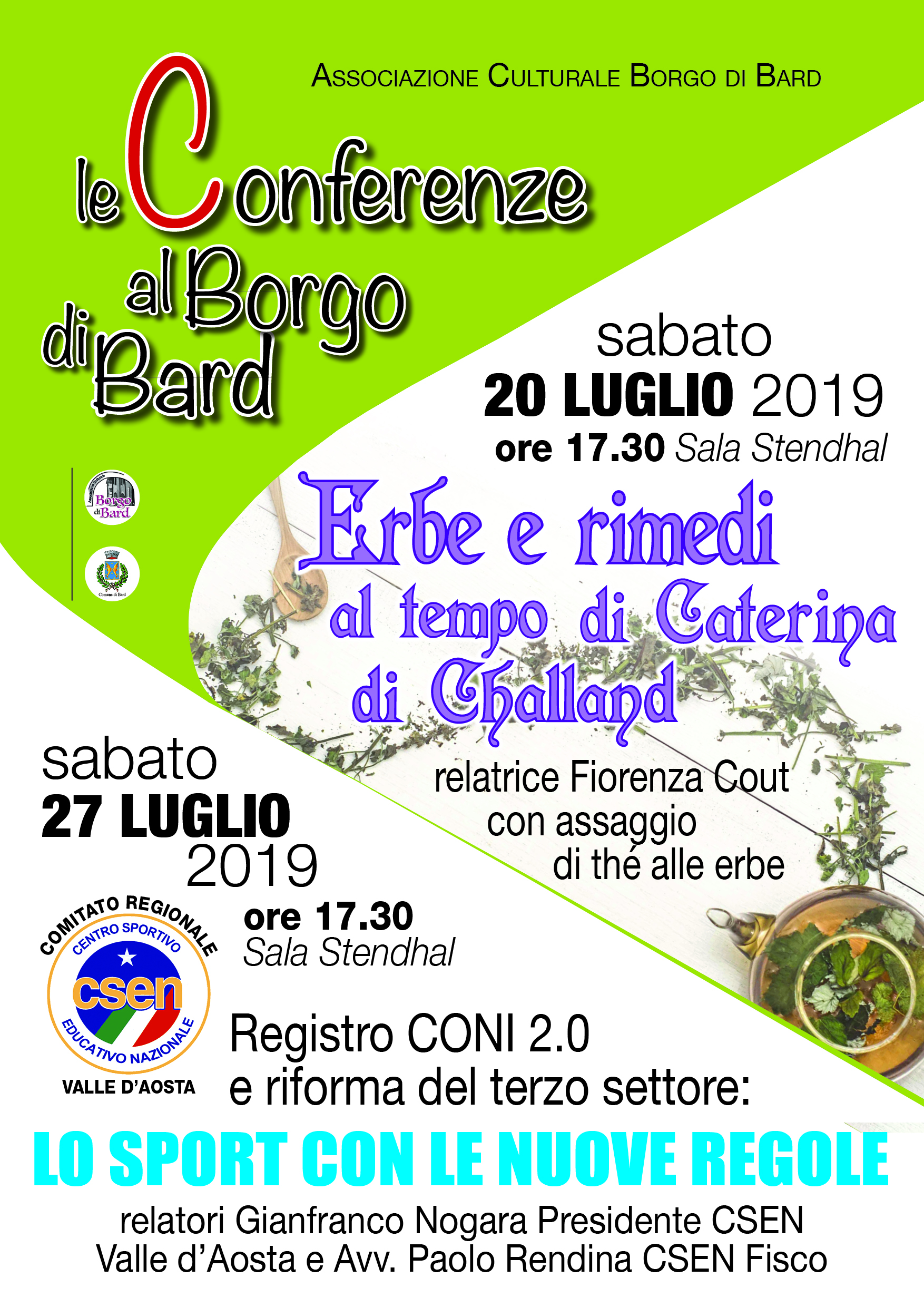 In allegato troverete le locandine con tutte le informazioni degli eventi programmati dall'Associazione Culturale Borgo di Bard per l'anno 2019.